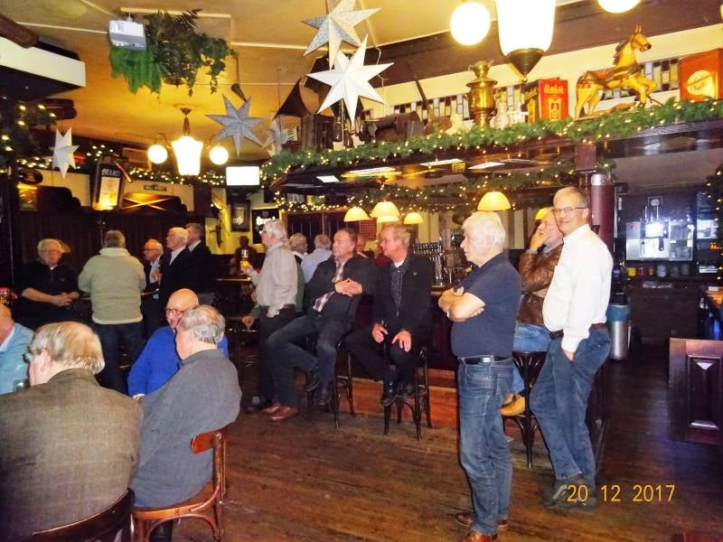 Er waren ca 40 leden aanwezig die zowel gingen whisten alsmede vlotbruggen om de volgorden van de prijsuitreiking te kunnen bepalen. Het was zo wie zo een spannende avond want velen volgden op het grote scherm de bekerwedstrijd tussen FC.Twente en Ajax. Na verlenging was het nog steeds 1-1 en moesten er dus strafschoppen genomen worden. Twente won deze wedstrijd op strafschoppen wat met een luid applaus werd begroet. Het was al over elven voordat de voorzitter kon beginnen met de prijsuitreiking. Nadien werd het voor velen nog een gezellig samenzijn en werd er afgesloten met een ieder gezellige feestdagen toe te wensen en een gelukkig Nieuwjaar.