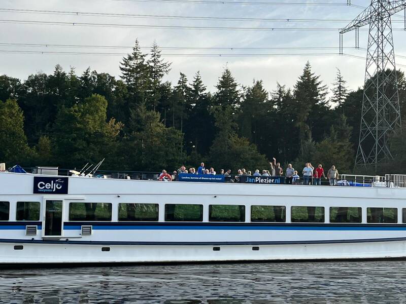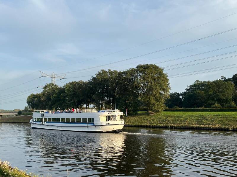 Kapitein Erwin Scheers van de Nirvana deelde onderweg regelmatig interessante bezienswaardigheden en merkte op dat de Nirvana met een snelheid van ongeveer 11 kilometer per uur voer. Op het zonnedek was daar weinig van te merken, maar we arriveerden iets te vroeg in Goor. Daarom stelde kapitein Erwin voor om nog even door te varen naar Delden, zodat we ook dat deel van Goor konden verkennen.